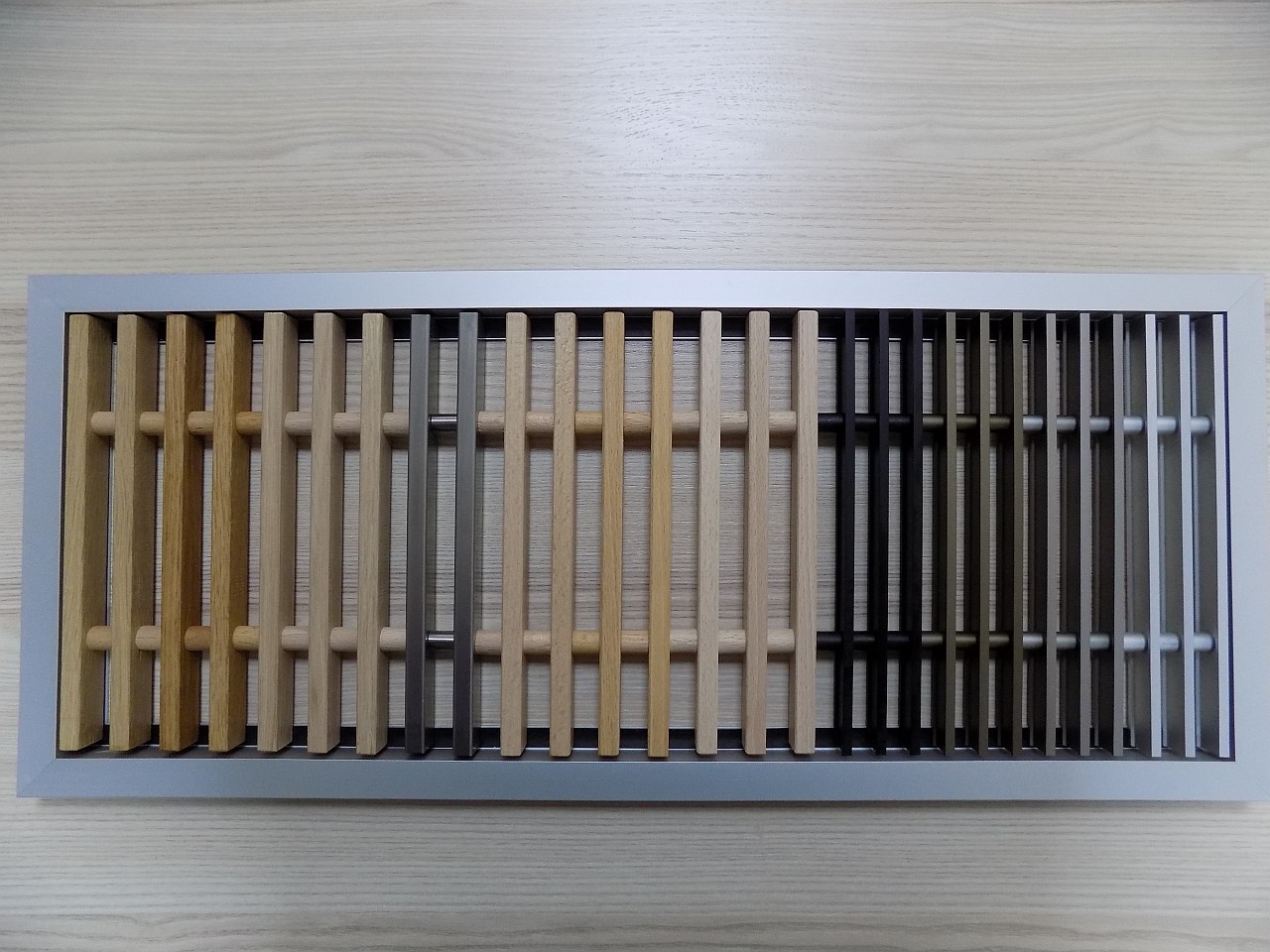 - krycí mřížky na podlahové konvektory z materiálů barevný eloxovaný hliník, nerez profily, dub a buk přírodní, ošetřený olejem a bezbarvými laky, k mřížkám lze dodávat hliníkové rámečky eloxované tvaru "L", "U" a "Z"